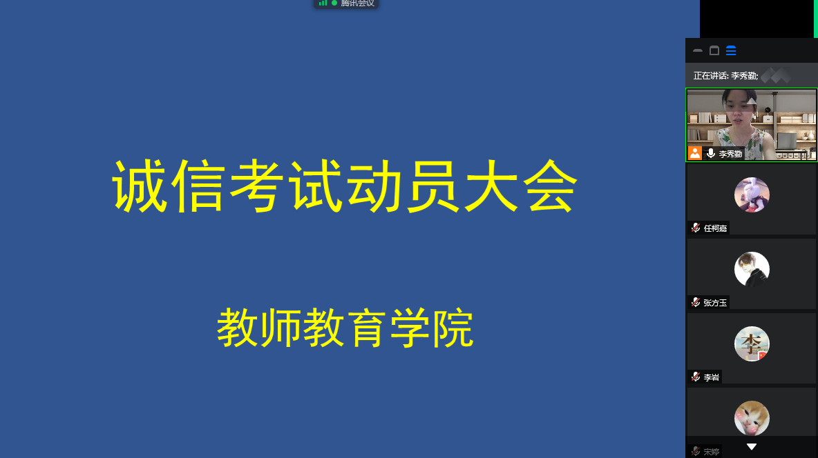 2020年6月10日晚,伟德bv1946官网2019级全体员工参加了“诚信考试动员大会”为主题的年级腾讯会议。会议由李秀勤老师主持。