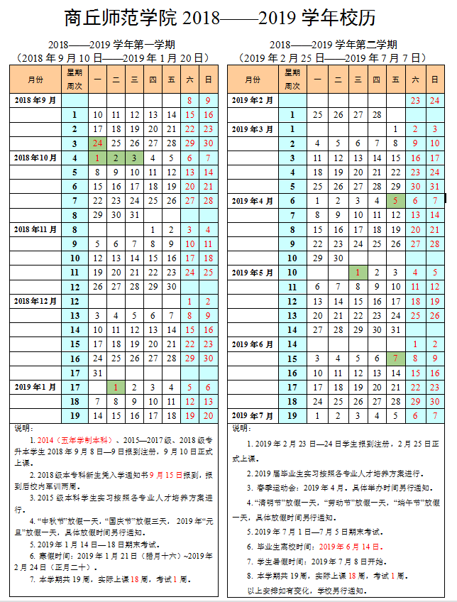 伟德bv1946官网2018-2019学年校历
