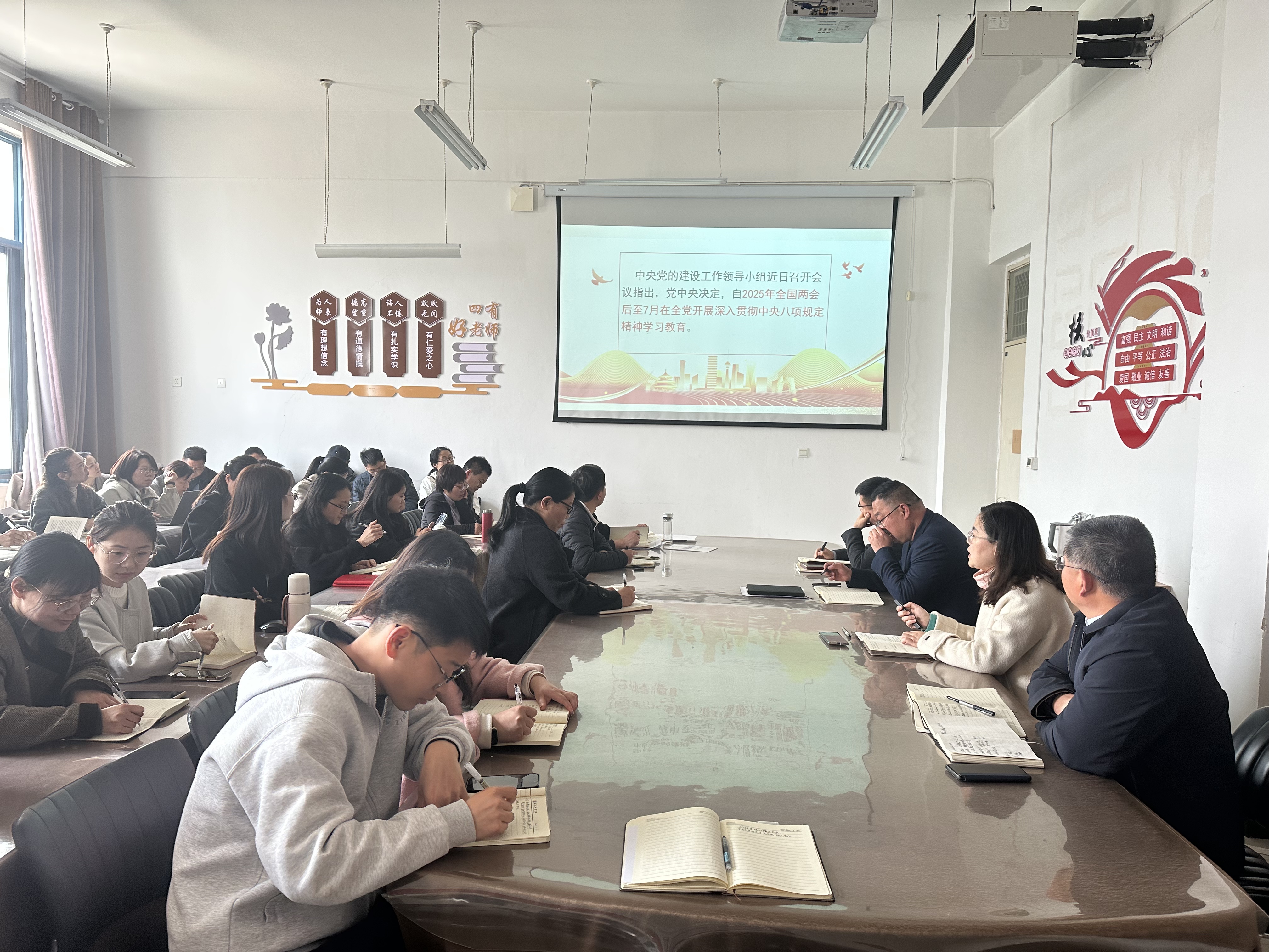 郭宁强调要准确理解、正确领会中央八项规定及其实施细则精神实质,结合工作实际,认真学习贯彻。一是要提高思想认识,深刻把握党中央开展深入贯彻中央八项规定精神学习教育的重大意义。学院领导班子要充分发挥示范带动作用,切实在学习贯彻中央八项规定及其实施细则精神上以身作则,以实际行动引领学习教育取得扎实成效。二是要抓好学习研讨,坚持原原本本学、融会贯通学、联系实际学,注重融入日常、抓在经常,在学习的过程中把自己摆进去、把工作摆进去、把职责摆进去,推动学习教育入脑入心、见行见效。三是要坚持学用结合,把学习教育和推动发展结合起来,做到两手抓两促进,切实以学习教育破解发展难题,把学习教育成果转化为推动学院干事创业的实际成效。