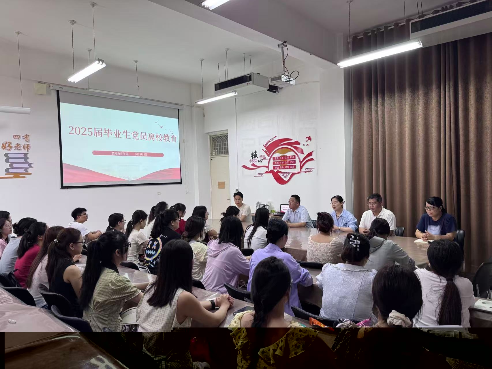 为扎实做好2025 届毕业生离校工作,引导毕业生文明离校、感恩母校,强化毕业生党员的责任意识与党性修养,5月26日,公司召开 2025 届毕业生文明离校教育会暨党员教育大会。公司党委书记郭宁、经理孙旭、公司党委副书记邱友谊、全体辅导员以及毕业生代表参加会议。