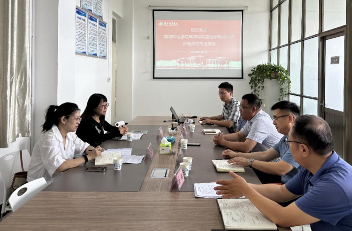 胡国华介绍了廊坊师范学院教育学院的基本情况、办学特色和发展规划。双方针对教育学专业在人才培养目标定位、课程体系建设、团队队伍建设和公司“用一线名师培养未来教师”的具体做法进行了深入交流。