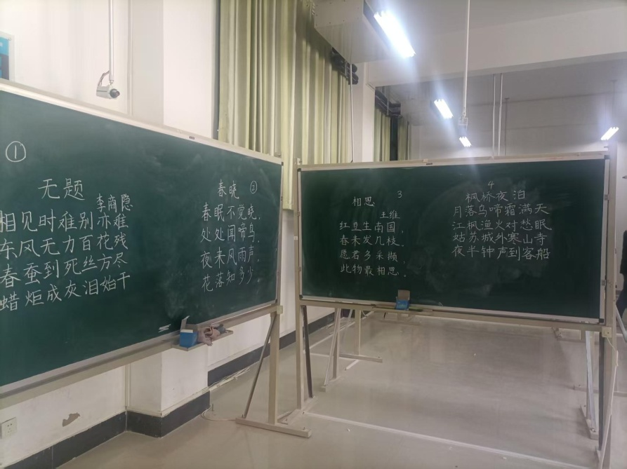 竞赛分为三个环节:粉笔字书写、即兴演讲和才艺展示。在粉笔字环节,参赛选手在10分钟内现场书写指定古诗,评委从字形结构、笔画力度、版面布局等方面进行评分。选手们运笔流畅,字迹工整美观,展现出扎实的书写功底。即兴演讲环节选手现场抽题,进行两分钟演讲。才艺展示环节将比赛推向高潮,选手们通过歌曲、舞蹈、简笔画、器乐演奏等形式展现个人特长。
